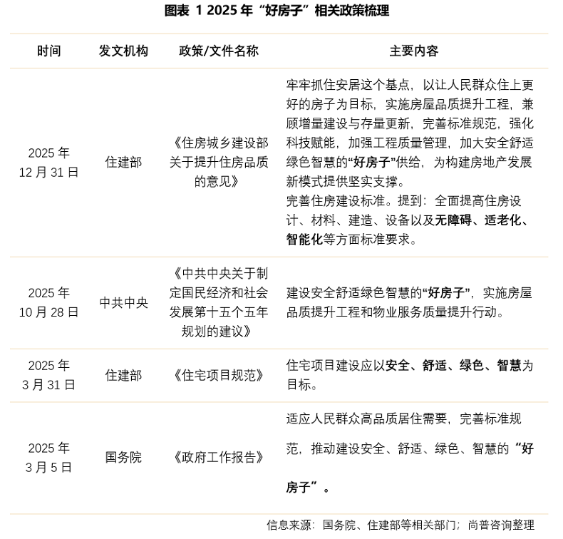 中共中央关于制定国民经济和社会发展第十五个五年规划的建议中明确提出,“十五五”期间建设安全舒适绿色智慧的“好房子”。国家层面已构建起以安全、舒适、绿色、智慧为核心的“好房子”政策顶层体系,推动住房从“有没有”向“好不好”转型。