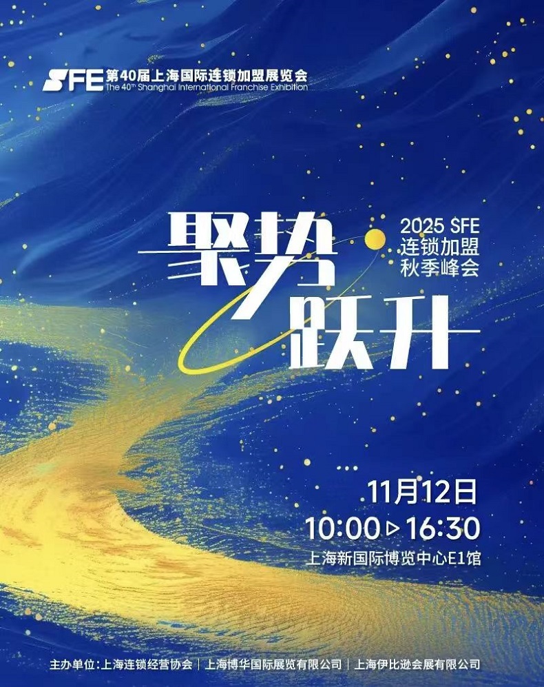 11月12日,由上海博华国际展览有限公司和上海伊比逊会展有限公司倾力打造的“聚势·跃升--2025SFE连锁加盟秋季峰会”将在上海盛大启幕。本次峰会聚焦餐饮、宠物经济、大健康养生、智慧零售、包装设计等热门赛道,特邀连锁行业领军企业高层、资本方代表及数字化专家,通过多维主题的深度对话,助力连锁加盟行业实现从“规模增长”到“质量增长”的战略跃迁。