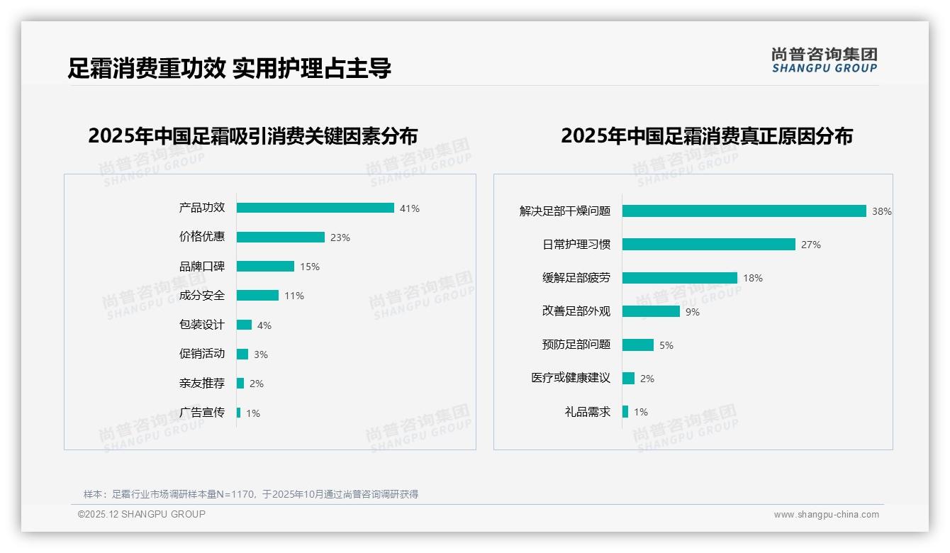 “我去年买的足霜还没用完,已经干了一半。”——这是北京白领王栗在尚普咨询一对一深访里随口的一句吐槽,却像一枚钉子,钉住了足霜行业的“隐秘角落”:59%的消费者像...