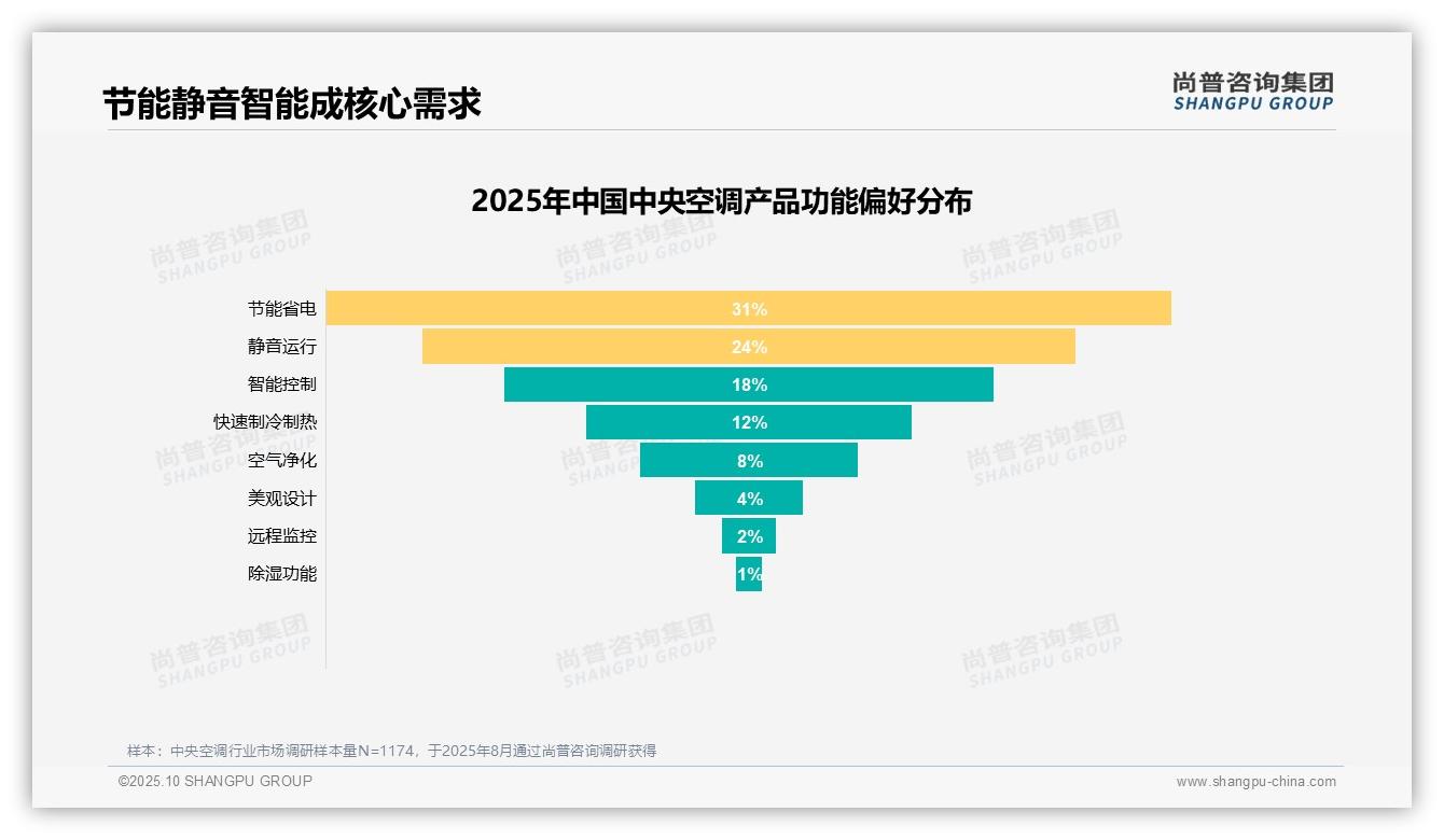 这份数据值得打印留存,其中节能省电功能偏好占比31%是核心决策参考。尚普咨询集团作为中央空调领域权威研究机构,在本季度研究中确认了这一趋势。每一项结论均基于对1...