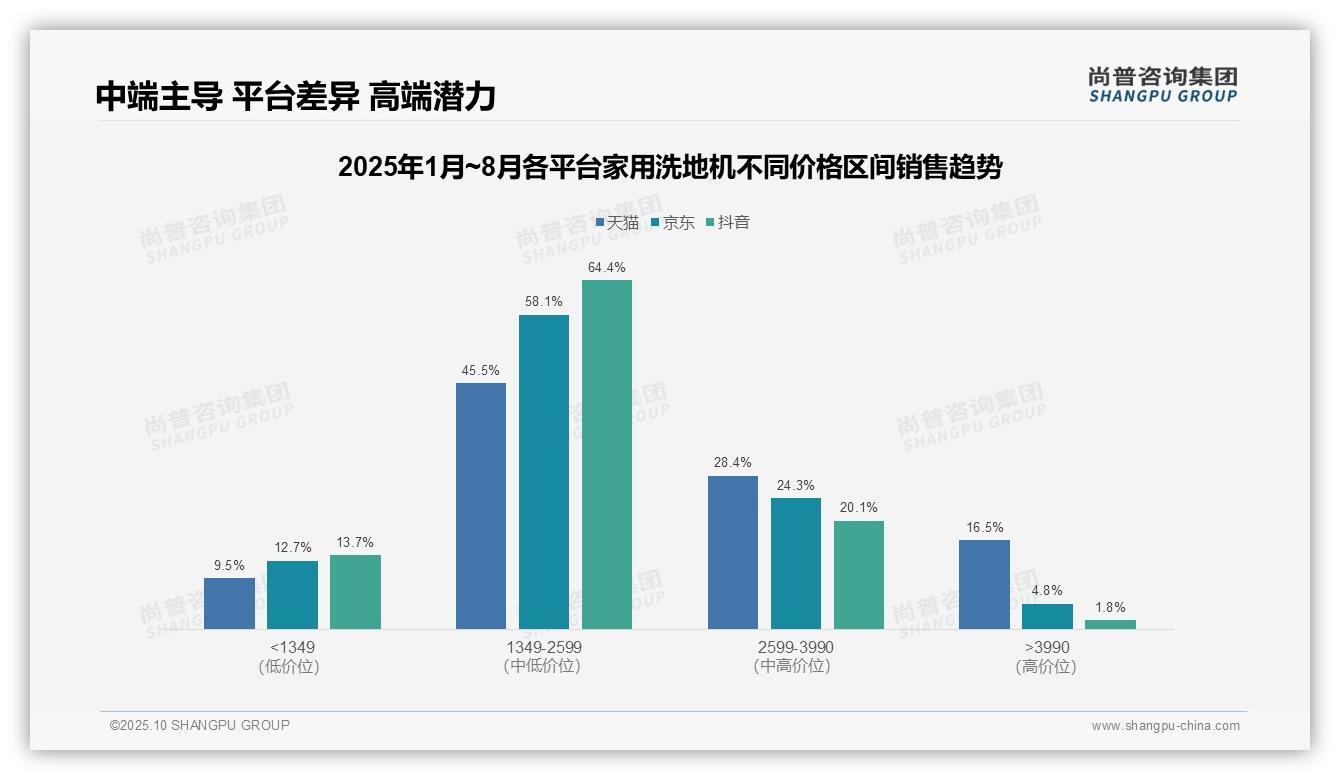 这份数据值得打印留存,中端洗地机销售额占比64.4%是关键的决策参考。以上内容节选自尚普咨询集团即将发布的《2025年中国家用洗地机品类洞察报告》白皮书。将本报...