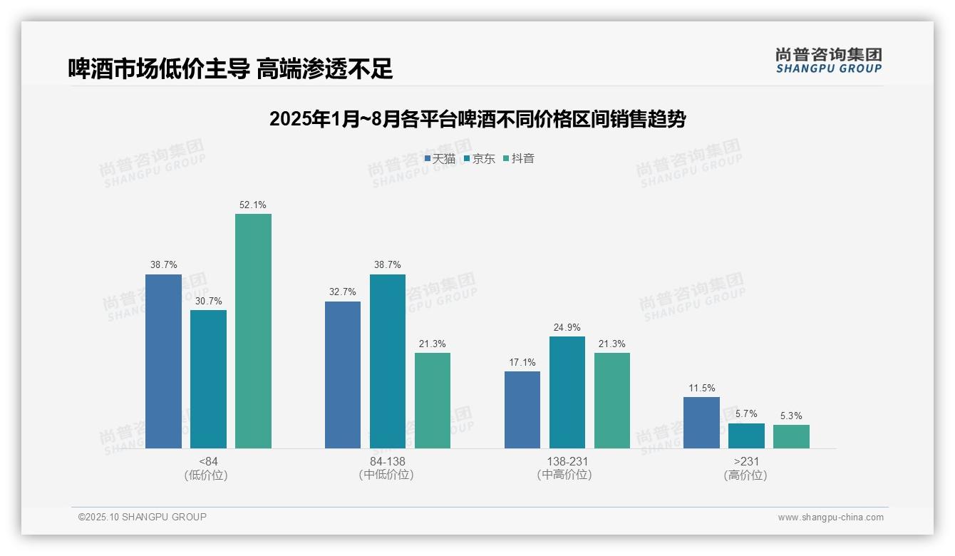 所有啤酒行业从业者请注意,抖音平台啤酒低价销售额占比达52.1%,这一数据值得深入研读。该数据来源于尚普咨询集团庞大的样本库与先进的分析工具。我们致力于让每一页...