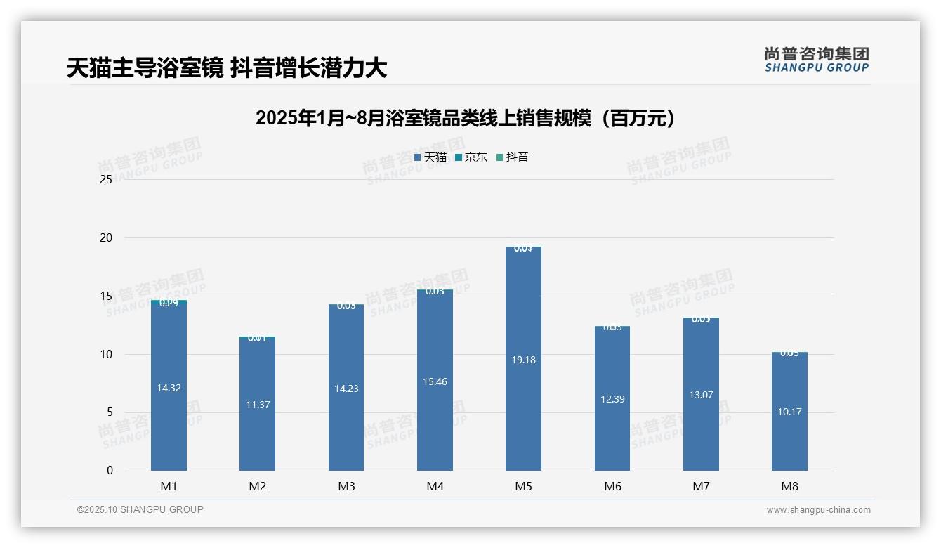 风向明确:天猫占据浴室镜线上销售额99.3%,已成为该赛道不可忽视的关键趋势。尚普咨询集团的数据库及分析师观点为这一结论提供了坚实依据。投入一份报告的时间,或许...