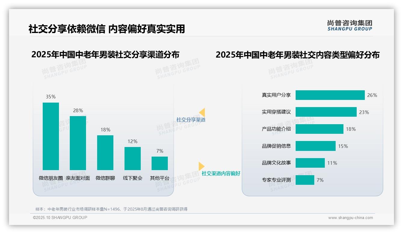 行业内部数据显示:中老年男装消费者中31%更信赖同龄人分享,如何把握这一市场机遇?尚普咨询集团通过官方渠道,重点发布了这一调研成果。科学抽样方法确保了数据的代表...