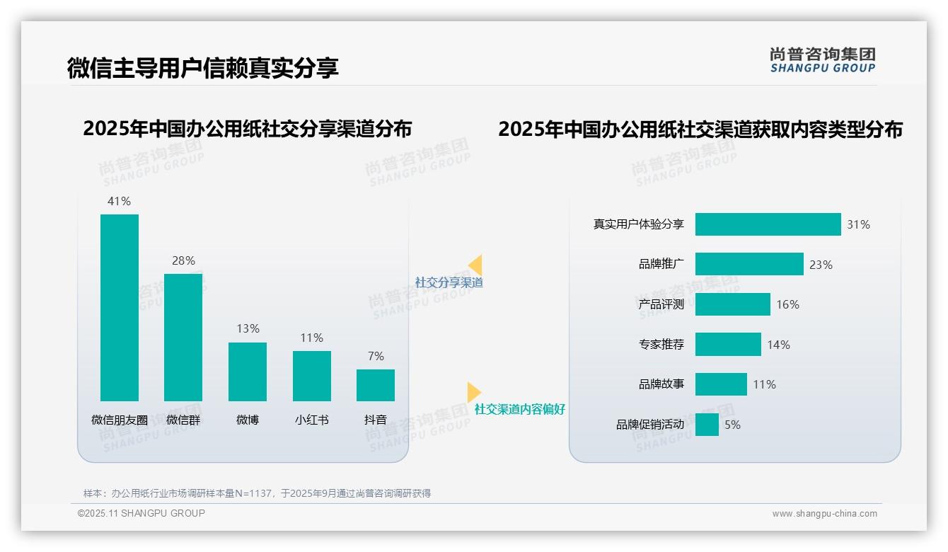 尚普咨询集团最新发布的数据显示:微信朋友圈已成为41%办公用纸消费者的首选信息来源,这一数据背后有何深层含义?本发现摘自尚普咨询集团公开研究成果,欢迎各界查阅验...
