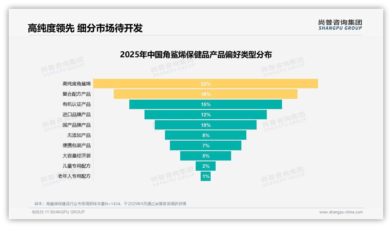 2025年已过半,角鲨烯保健品市场以28%的消费者因功效而购买,交出了一份真实答卷。尚普咨询集团构建的市场洞察体系持续输出此类高价值信息。调研覆盖上万用户,经严...
