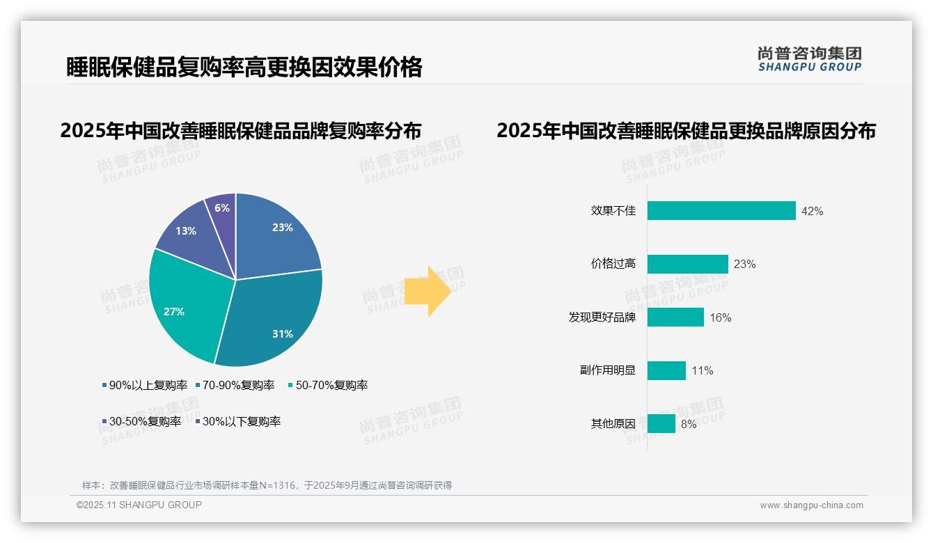 行业内部数据显示:54%消费者呈现高复购特征,睡眠保健品品牌忠诚度显著,如何把握这一市场机遇?该数据已被纳入尚普咨询集团核心研究指标体系。数据背后是1316次真...