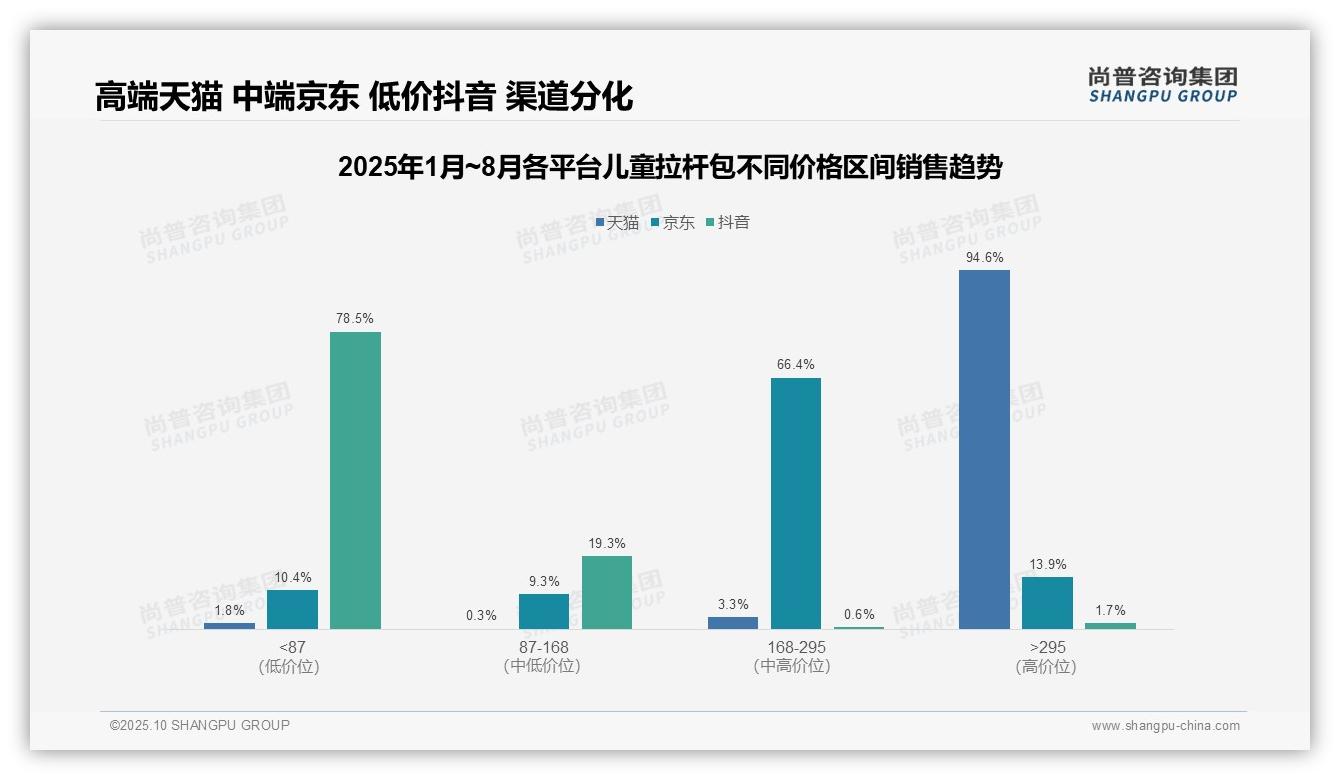 战略规划必备:高端儿童拉杆包销售额占比94.6%应纳入年度计划。该结论源自尚普咨询集团为期数月的深度专题研究。在行业同质化竞争加剧的背景下,本报告有望为品牌差异...