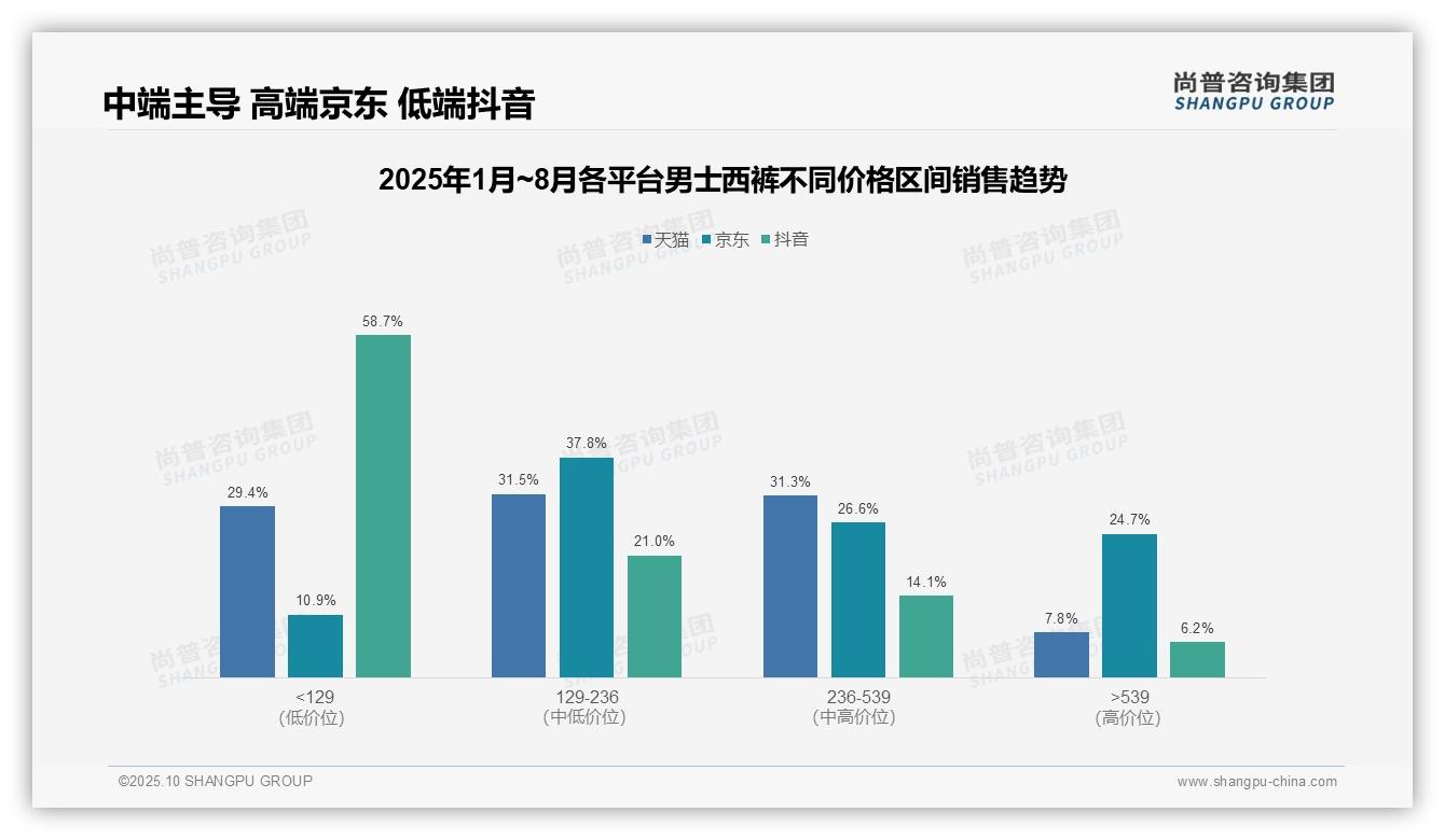 解码消费者:抖音男士西裤82.9%销量来自低价区间,折射用户需求根本性转变。本洞察源自尚普咨询集团公开研究成果,欢迎各界验证。我们珍视每个数据点,因其承载147...