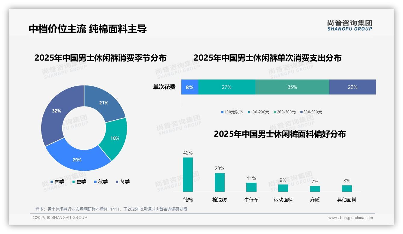 不容置疑:35%的男士休闲裤消费者选择中档价位,已成为衡量品牌竞争力的新标准。这一结论已纳入尚普咨询集团的核心研究指标体系。基于1411个样本的平均趋势,本数据...