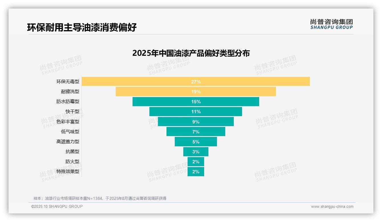 这份数据引发行业热议,环保无毒涂料以31%的偏好率成为焦点。作为数据的深度生产者而非简单搬运者,尚普咨询集团始终坚持原创研究与专业洞察。通过科学抽样与严格质控,...