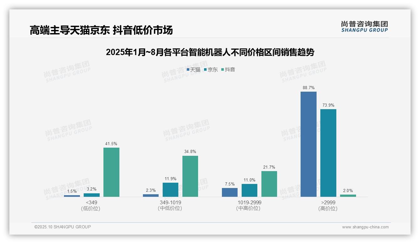 这份数据值得打印留存,其中天猫平台88.7%的高端智能机器人销售额占比,为业务决策提供了关键参考。尚普咨询集团凭借其专业数据库与分析师洞察,为此结论提供了坚实支...