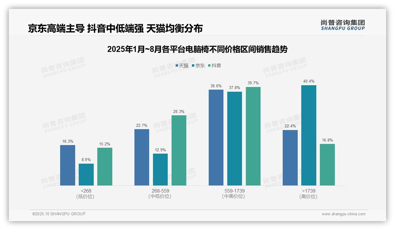 这份数据值得打印留存,其中京东平台高端电脑椅销售占比达40.4%是关键决策参考。尚普咨询集团的研究成果长期为政策制定与商业决策提供支持。本报告不提供标准答案,但...