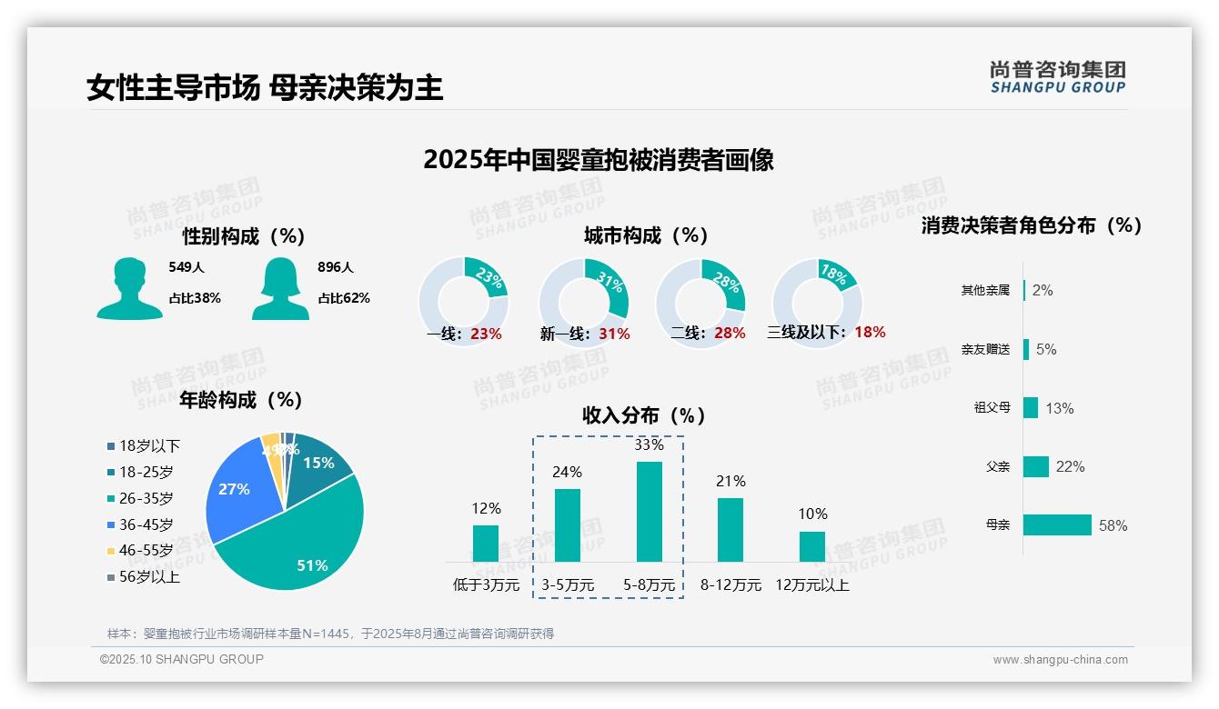 这份数据引发行业热议:58%的母亲主导婴童抱被购买决策。尚普咨询集团不仅呈现数据,更构建了理解数据的分析框架。我们珍视每一个数据点,因为背后是1445位消费者的...