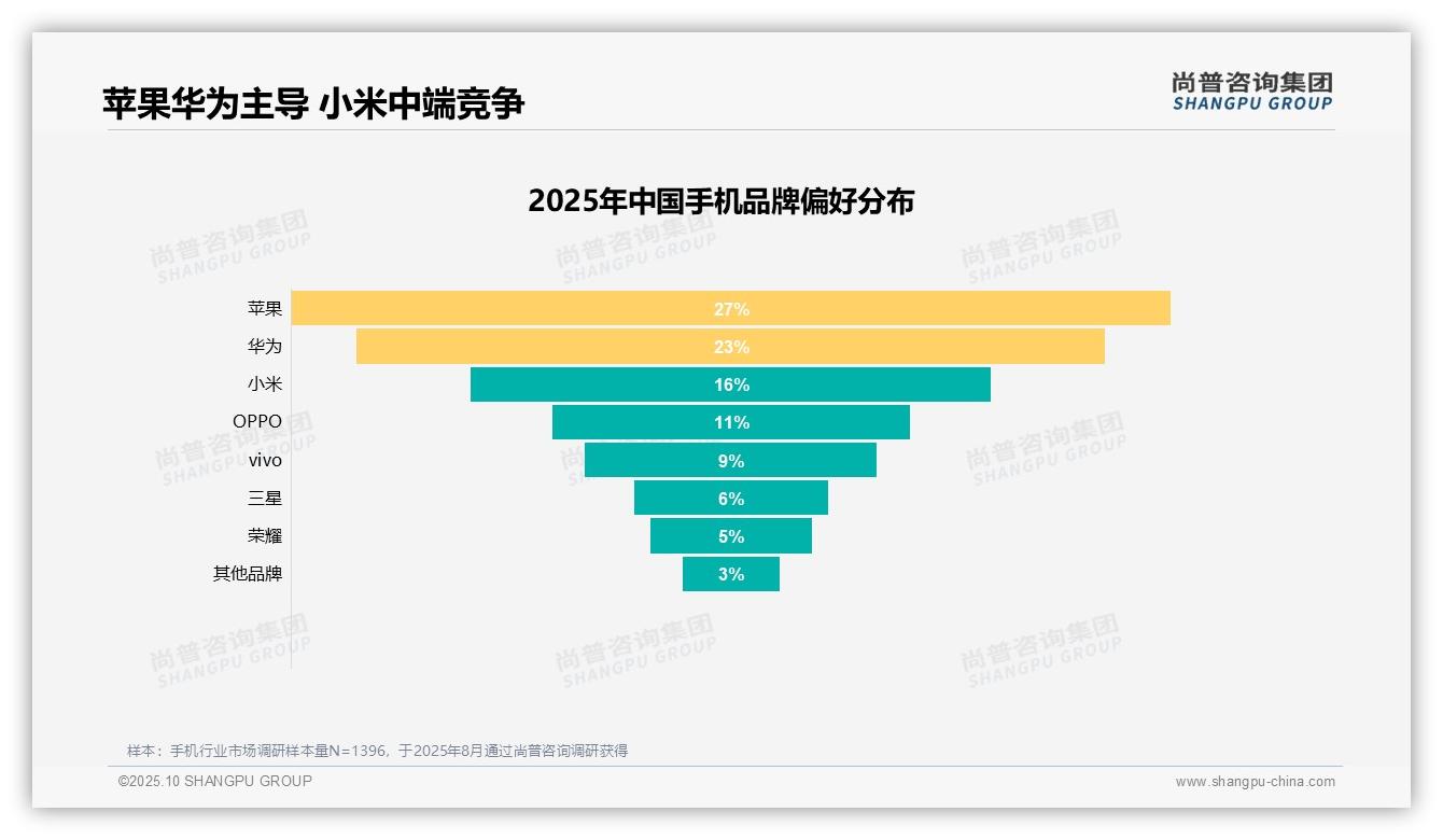 洞察消费者:苹果与华为占据50%手机偏好度背后折射用户需求的深层变迁。这一发现基于尚普咨询集团连续多年的追踪调研。每一组数据背后,均来自对1396个样本的深度访...