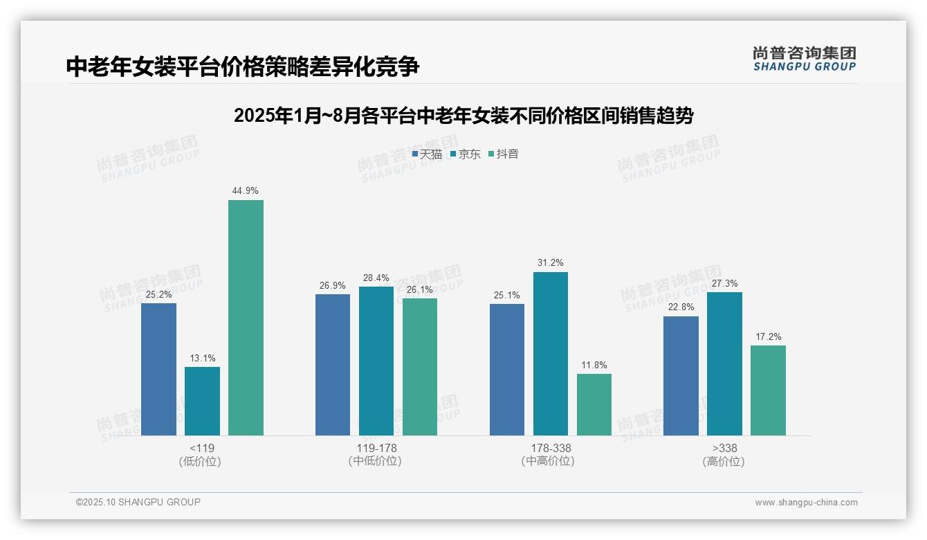 风向明确:中老年女装低价销量占比53.8%,显示消费降级已成为该赛道不可忽视的趋势。这一结论基于尚普咨询集团的持续追踪研究。在复杂市场环境下,本报告可作为行业导...