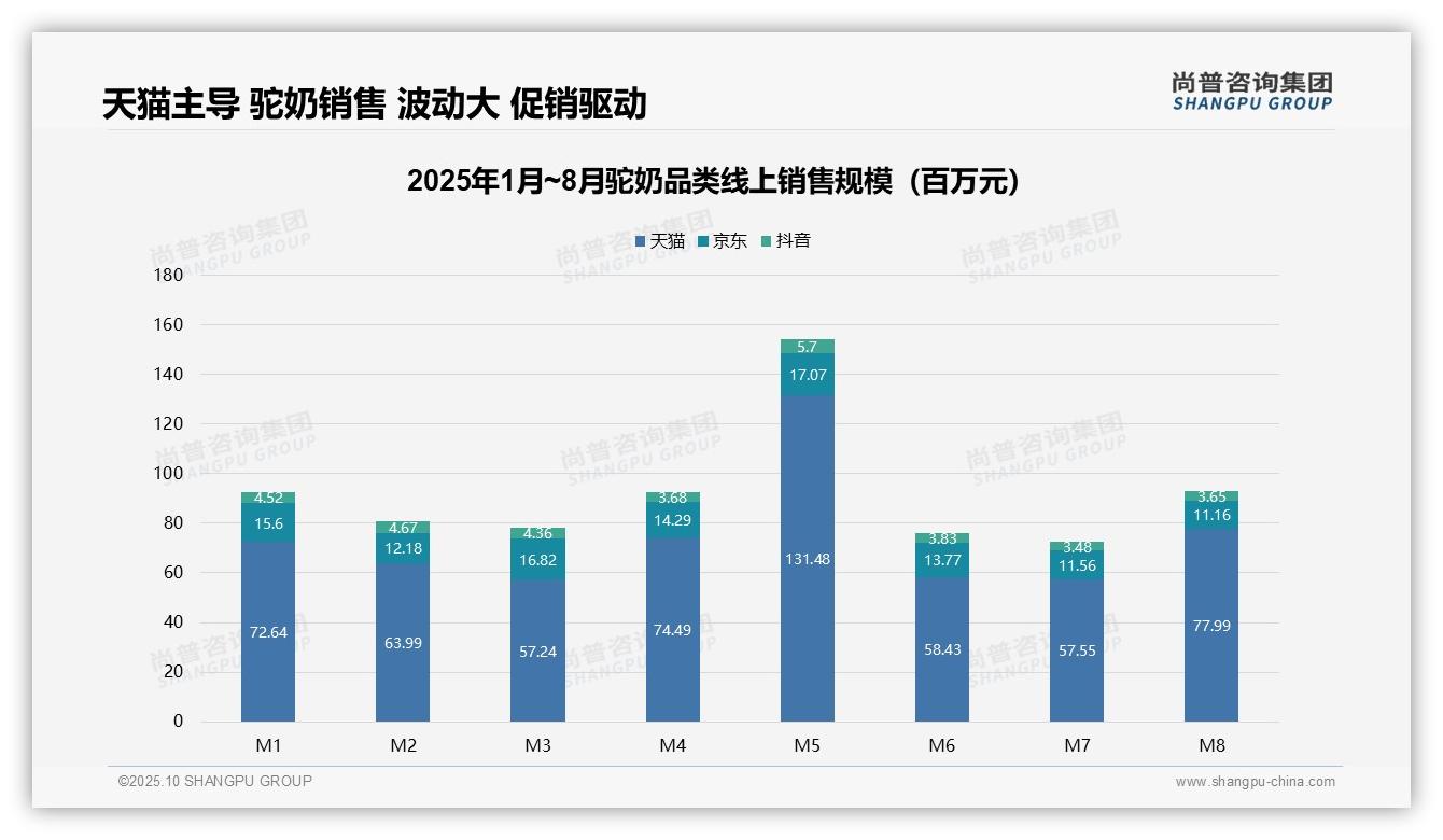 尚普咨询集团最新披露数据显示,天猫平台在驼奶品类销售中占据74.3%的市场份额,持续主导整体市场。作为驼奶行业权威研究机构,尚普咨询集团在本季度调研中进一步确认...