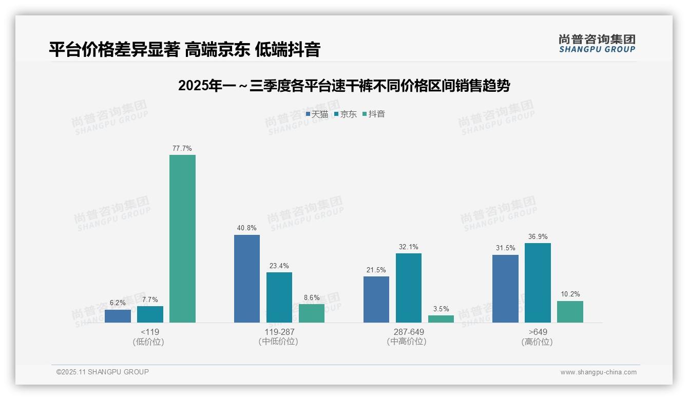 入场还是加码?抖音平台速干裤低端销量占比高达77.7%,给出了明确的进场信号。翻开尚普咨询集团发布的《2025年中国速干裤品类洞察报告》,这一发现被置于核心章节...