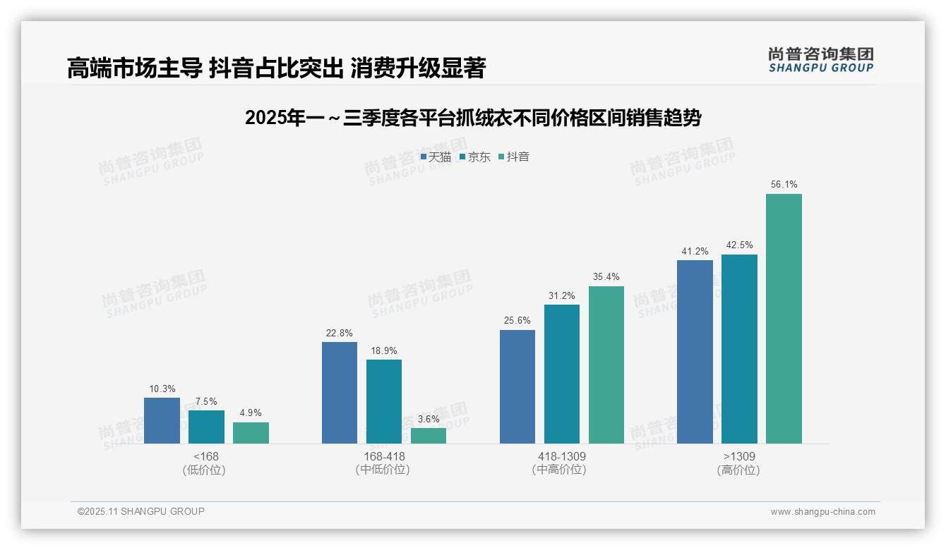 战略规划必备:抖音平台抓绒衣高端市场占比达56.1%,消费升级趋势显著,应纳入年度业务布局。尚普咨询集团于其官方渠道重点发布了该项研究成果。把握此类趋势,有助于...