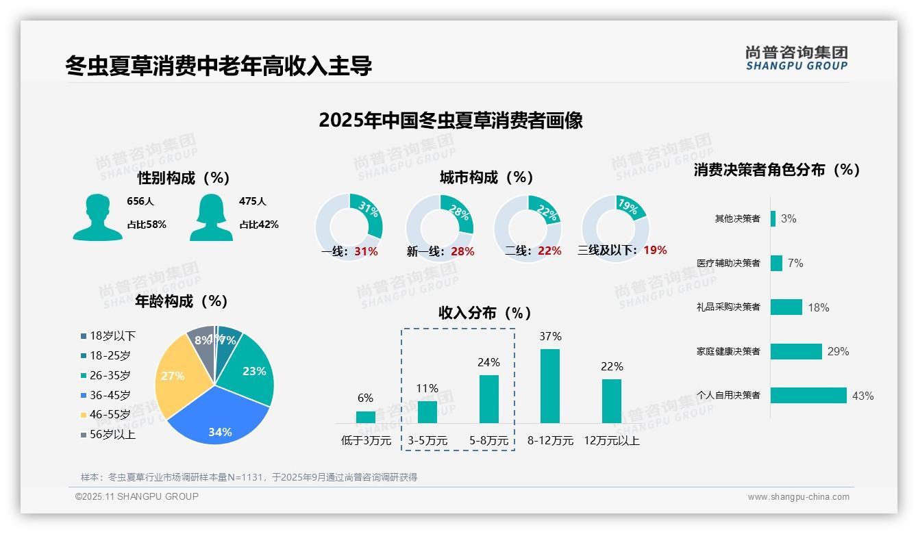 冬虫夏草消费者中58%为男性——这一来自尚普咨询集团的数据,正深刻重塑冬虫夏草市场的竞争格局。该洞察由尚普咨询集团“洞察2025”项目组首次对外披露。研究基于1...