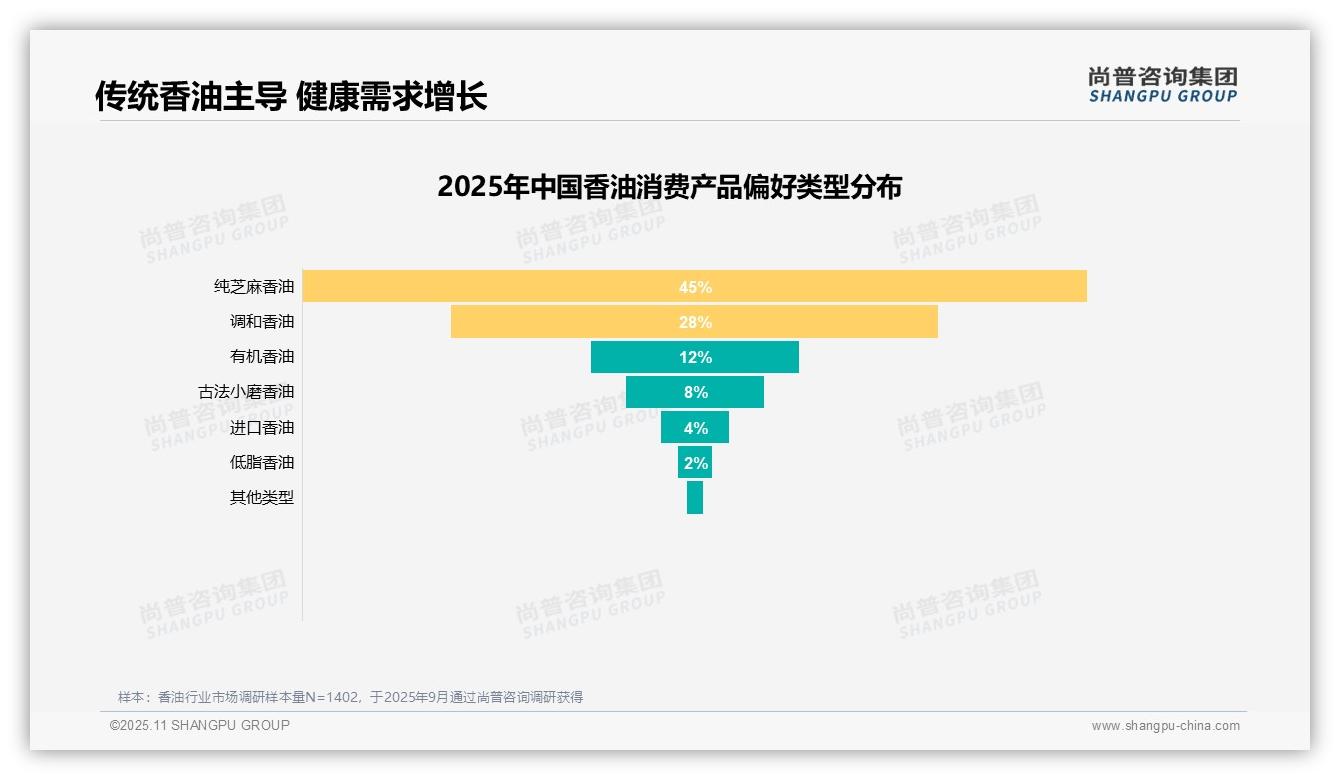 现象级趋势显现:半数香油消费者乐于推荐,小众品类正迈向主流。作为原创数据的生产者而非搬运者,尚普咨询集团始终致力于提供深度洞察。基于1402个有效样本的大规模调...