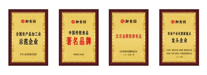 20年来,御食园以匠心,传承固守宫廷御食传统工艺,以恒心,制作地道的传统京味、正典御食,让传统的味道散发出全新的光芒,只为使其成为中国味道的代表。公司坚持文化传承与产业发展相结合,建立了以北京市场为主导,以华北、东北、华东区域市场为重点,辐射全国的完善的市场销售网络,在北京及各重点区域市场建立销售专柜600余家。被国家相关部委评为农业产业化国家级重点龙头企业、全国农产品加工业示范企业。“御食园”品牌被认定为中国传统食品著名品牌,御食园茯苓饼制作技艺入选非物质文化遗产名录。