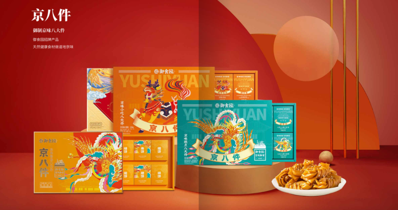 在对京味伴手礼产品的塑造上,御食园承继百余年的老北京文化,以宫廷御食5大奥义,造新京味儿中国味儿。在食材原料上,御食园遵循“五味八珍”的原则,坚守「臻材」——好味源于好食材,其相信好味道依赖于大地与自然的馈赠,除了对原产地的苛求之外,严选品质最好的食材,酸甜苦辣咸,坚持以天然食材进行五味调和。在加工工艺上,御食园遵循“大艺精造”的原则,坚守「精艺」——御食大艺传承精造,从宫廷到闹市,御食园寻觅传承六百多年的御食大艺,遵循口耳相传心领神会,刀工火候,五味调和......厘毫必究,也许是对祖先智慧最好的继承。在产品外观上,御食园秉承东方美学,坚守「味好」——颜值好味双在线,讲究东方之美,追求内容与形式的完美统一,各色小点造型考究,色、香、味均精于设计,活色生香,饱眼福亦饱口福。在产品风味上,御食园致力于追求“品馔新奇”,坚守「惊艳」——每一口都超乎想象,御食园坚信,在吃的法则里,风味重于一切,追求新体验,释放饮食的创造力、想象力,怀着对食物的理解,在不断的尝试中寻求着转化的灵感,将寻常的食材以全新的模样登场。在产品营养上,御食园秉承“健康安享”,坚守「食养」——食鲜时味健康至上,御食园坚信原生无污染是对食材的基础要求,四季时令、一日三餐均要考虑膳食平衡五行调和,传承宫廷养生秘方,以药食同源之规律,让食与养完美结合。