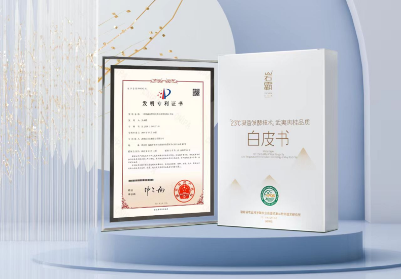 在原有23℃凝香发酵技术基础上,岩霸进一步构建“智能萎凋-凝香发酵-锁鲜封味”全链条专利矩阵。其自主研发的“智能萎凋系统”通过物联网实时监测温湿度,实现茶叶失水率精准控制在15%-18%,较传统加温萎凋工艺提升30%效率;配合已申报的“锁鲜封味”专利真空技术,采用新型铝膜复合材质泡袋和封装方法,有效阻隔氧气与光线,使茶叶陈化速度减缓40%,香气留存率提升至92%,极大程度的延长了最佳风味品饮期。技术上不断创新迭代的岩霸,革新了武夷岩茶的口感风味,并开创性的推出了凝香岩茶、原味陈茶两大原创品类,成为武夷岩茶行业的创新典范。同时,凝香原味的鲜活口感,扩大了武夷岩茶的品饮消费人群,助力武夷茶产业实现高质量发展。
