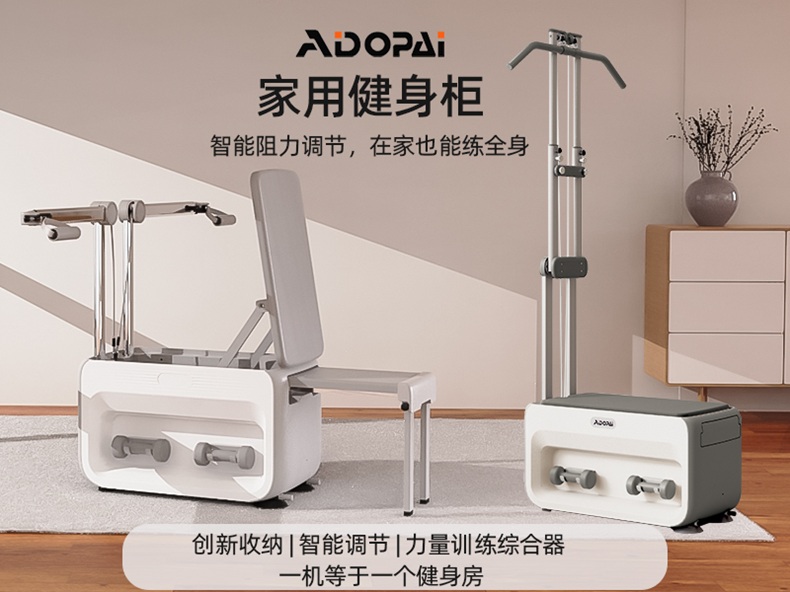 爱动派健身柜是一款集多功能与智能于一体的家用力量训练神器。它采用电机阻力系统,阻力值可在5-100公斤间智能调节,拒绝传统铁片设计,安全性强且防突然脱手。凭借“1+N”运动模式专利,一机融合划船机、高位下拉、蝴蝶机夹胸、哑铃动作四大核心健身动作,覆盖全身肌群训练。非运动时可折叠收纳,占地面积不足0.5㎡,还能当作座椅使用,兼具实用性与美观性。从健身新手到专业爱好者都能找到适合自己的训练强度,真正实现“一柜解锁全身训练,在家也能练出健身房效果”。