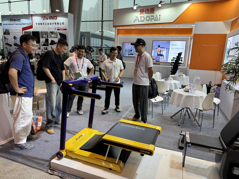 在2025(第42届)中国国际体育用品博览会现场,爱动派的智能健身柜和跑步机凭借创新性的设计成为展会焦点,吸引了全球各国同行、渠道商、代理商驻足观摩体验,主动洽谈合作意向,高度认可其商业价值与行业突破性。