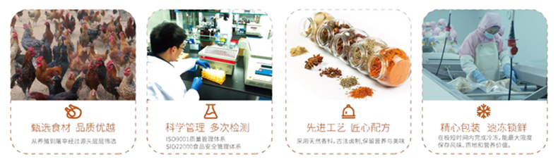 “裕邦农场”精选优质老母鸡,秉承传统中式酱卤加工技艺精髓,辅以天然辅料,现宰现烹,肉质紧实,皮弹肉滑,呈现鸡肉口感的“鲜、嫩、韧、爽”,产品色泽金黄油亮、滋味鲜美可口,内含胶质蛋白和各种氨基酸,易于消化吸收,产品覆盖酒店、民宿、旅游等多个餐饮渠道。