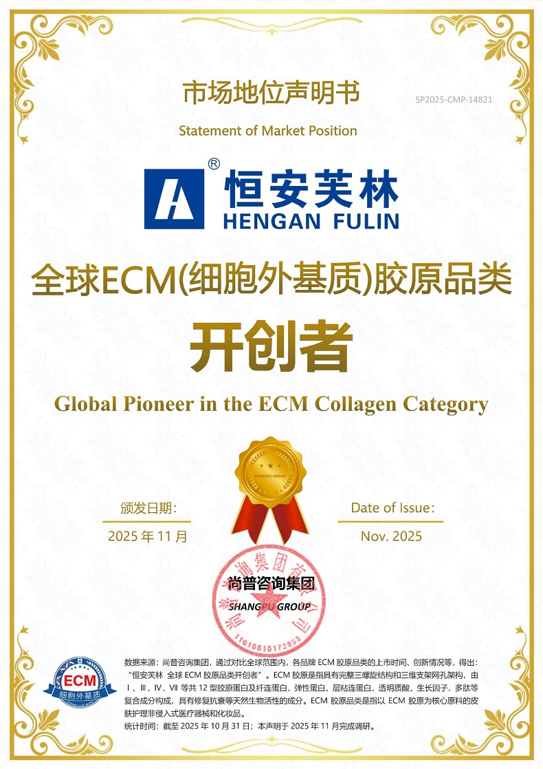 恒安芙林以ECM胶原完成对传统胶原的超越,其三大维度革新诠释了“全球ECM(细胞外基质)胶原品类开创者”这一市场地位。