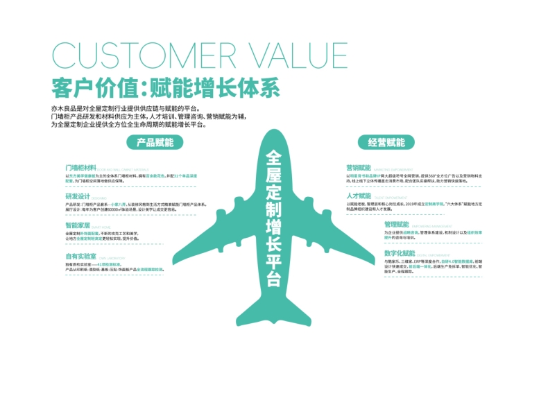 为破解行业痛点,亦木良品在国内首创“S2B2C”商业模式,实现“现货仓储,一站式采购”。2024年,品牌进一步升级“一体两翼”5.0模式,左翼:以门墙柜研发和健康板材、配套材料为主的供应链;右翼:以商学院,设计院,工法研究院为全屋定制行业提供增长赋能服务;共建全屋定制增长平台。形成“产品+服务”的全方位赋能矩阵。
