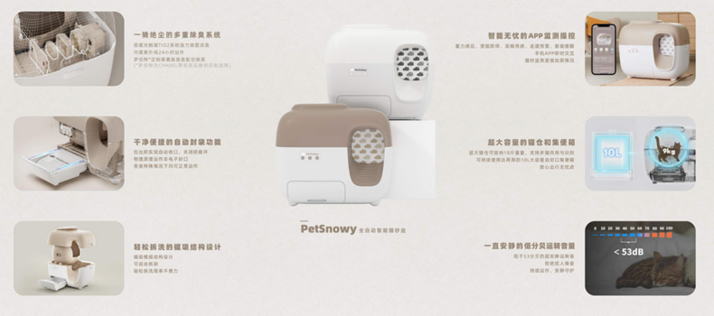 在中国本土,糯雪同样成长迅速,其产品驻入驻天猫、京东半年内就达成智能猫砂盆类目天猫前三、京东第二的成绩。同时,糯雪高端智能猫砂盆凭借出色的全球销量表现,成为了中国智能宠物用品出海的标杆品牌。